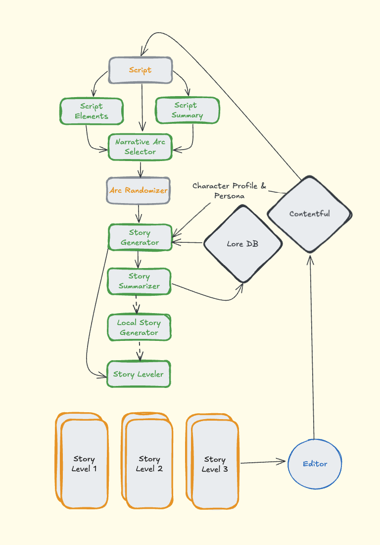 To overcome the challenge, I refined the workflow by first summarizing the original English stories into core elements using an AI agent. Subsequently, another AI agent used these summaries, along with carefully crafted prompts, to generate new stories in the target language. This approach preserved the narrative essence while ensuring authenticity and fluidity, significantly enhancing the reading experience for native speakers.